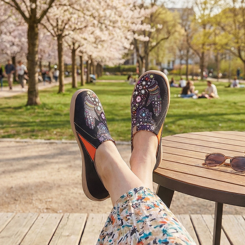 Perfectly fits the shape of any foot, granting ultimate freedom and relaxation to your walking experience. Loose toe-box is great for bare-foot use, allowing your toes to splay into their natural posture